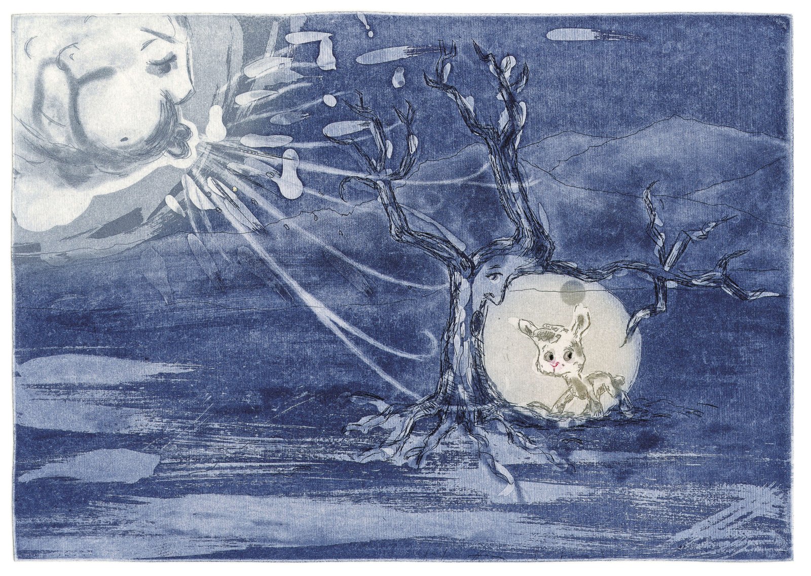 Den lille kaninen har gått seg bort på fjellet. Plutselig blir det mørkt og Kong Vinter viser sine krefter. Når det blir natt begynner treet å snakke. Kanskje blir det plutselig til et troll, om du ser nøyere på det. Fjellene strekker seg bakover og bakover, i uendeligheten og alt føles skummelt.