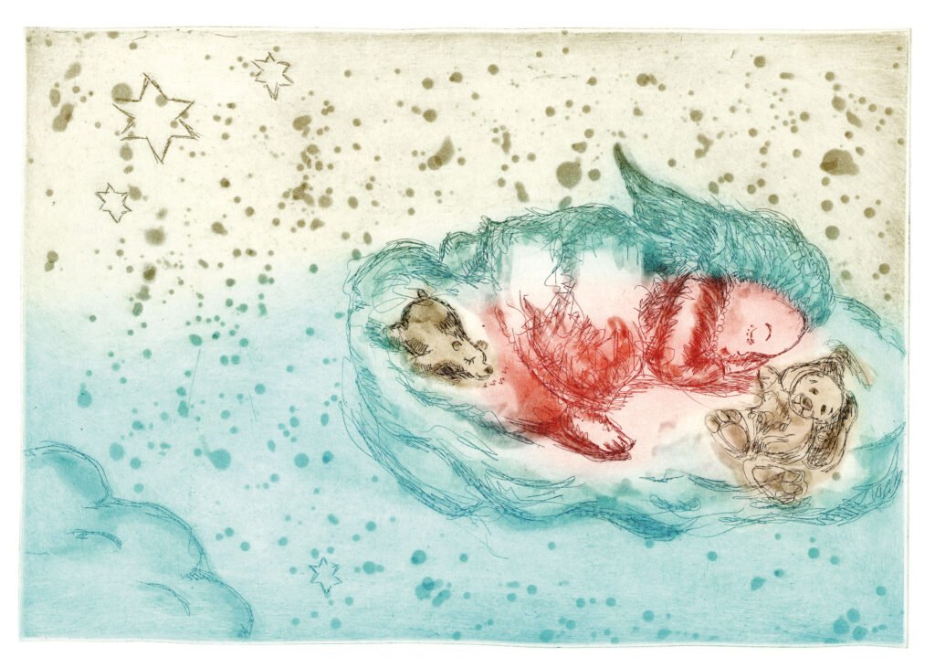 Stikkord: beskyttelse, beskyttende kjærlighet, Bjørg Thorhallsdottir, drømmer, emosjonell kunst, fred, grafisk trykk, hjem, hjertevarme, hvile, indre fred, kjærlighet, kjærlighetens kraft, kunst, kunst med mening, kunst til hjemmet, livsfilosofi, omsorg, refleksjon, ro, ro i sjelen, sov godt vårt alt, søvnens helbredende kraft., symbolikk, tilknytning, trøst, trygg havn, trygghet
